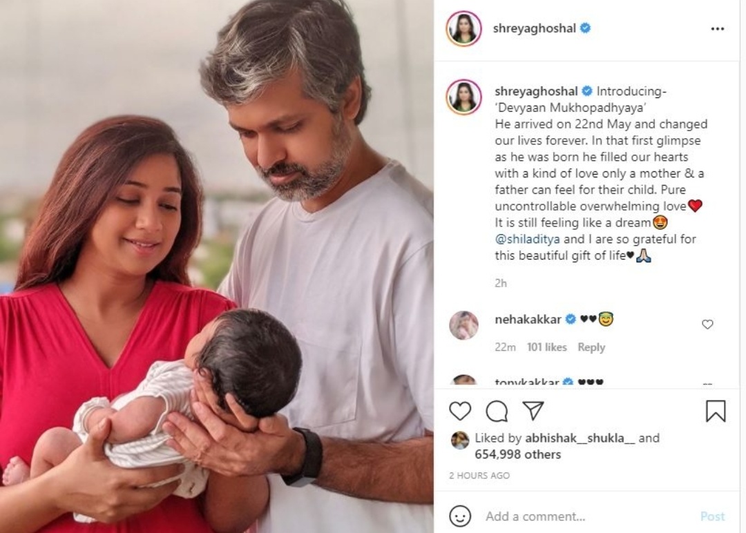 वहीं, Shreya Ghoshal ने बेटे के नाम की घोषणा भी कर दी है. Shreya ने बेटे का नाम रखा है- Devyaan Mukhopadhyaya रखा है. श्रेया ने बताया है कि 22 मई को उनके बेटे ने जन्म लिया और उनकी लाइफ उसने पूरी तरह बदल दी हैं