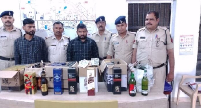 जिस पर थाना प्रभारी खमतराई के नेतृत्व में थाना खमतराई पुलिस की टीम द्वारा अपने पाईंटर को क्लासिक बार में भेजकर टेस्ट पर्चेस कराया गया। जिस पर उक्त बार में अवैध तरीके से शराब बिक्री करते पाये जाने पर पुलिस टीम द्वारा बार में रेड कार्यवाही किया गया, रेड कार्यवाही के दौरान बार में दो व्यक्ति उपस्थित पाए गए जिन्होंने अपना नाम दीपक पाण्डेय एवं मनीष यादव निवासी क्लासिक बार का होना बताया। जिस पर आरोपियों की निशानदेही पर उनके कब्जे से अवैध रूप से रखें अलग – अलग ब्राण्ड के 47 बाॅटल अंग्रेजी शराब, 20 बाॅटल बीयर एवं बिक्री नगदी रकम 36,380/- रूपए जुमला कीमती लगभग 1,00,000/- रूपए जप्त किया जाकर आरोपियों के विरूद्ध थाना खमतराई में अपराध क्रमांक 640/21 धारा 34(2) आबकारी एक्ट का अपराध पंजीबद्ध कर अग्रिम कार्यवाही किया गया। गिरफ्तार आरोपी