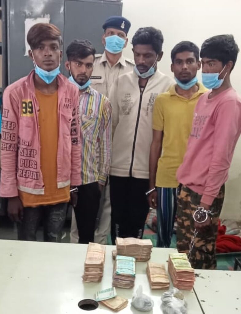 पुलिस ने बंजारी मंदिर के दान पेटी से नगदी रकम चोरी करने वाले 5 आरोपी को गिरफ्तार किया है. पुलिस के मुताबिक प्रार्थी राजय वर्मा ने थाना गोलबाजार में रिपोर्ट दर्ज कराया कि वह बंजारी चैक गोलबाजार में रहता है तथा पेशे से वकील है। बंजारी चौक गोलबाजार में बंजारी माता का काफी प्राचीन मंदिर है, मंदिर के अंदर एक दान पेटी रखीं है, जो जंजीर से बंधी रहती है जिसमें ताला लगा रहता है। मंदिर में दर्शनार्थी भक्तगण तथा व्यवसायी पूजा पाठ करने आते है और अपनी श्रद्धा अनुसार चढ़ावा दान पेटी में डालते है। मंदिर का दरवाजा प्रतिदिन सुबह करीब 07.00 बजे खुलता है, दोपहर 01.00 बजे बंद हो जाता है, फिर शाम 04.00 बजे खुलता है जो रात्रि करीब 08.00 बजे आरती होने के बाद रात करीब 09.00 बजे बंद हो जाता है। दिनांक 29.07.2021 के सुबह करीब 07.00 बजे प्रार्थी मंदिर खुलने के समय में आया तो वहां पर मंदिर के दक्षिण तरफ खुलने वाले दरवाजे के पास मंदिर के पुजारी सहित अन्य व्यक्ति देखें की बंजारी मंदिर के दरवाजे के उस गेट का ताला टूटा हुआ नीचे पडा था। दान पेटी टूटी हुई मंदिर के बाहर पीछे तरफ किनारे में पढ़ी हुई थी, कुछ चिल्लहर तथा 10 के नोट थे। कोई अज्ञात चोर मंदिर के दरवाजे मंे लगे ताला को तोडकर अंदर प्रवेश कर दान पेटी जो कि मंदिर के अंदर जंजीर में लाॅक कर रखी थी, को तोड कर दान पेटी में रखंे नगदी रकम को चोरी कर ले गया है। जिस पर अज्ञात आरोपी के विरूद्ध थाना गोलबाजार में अपराध क्रमांक 60/21 धारा 457, 380 भादवि. का अपराध पंजीबद्ध किया गया।