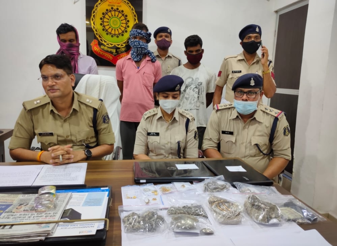 बिलासपुर: शहर के अलग-अलग थाना क्षेत्रों में घूम घूमकर चोरी को अंजाम देने वाले खासकर वाहन और जेवरात की चोरी को अंजाम देने वाले गिरोह को पकड़ने में सिविल लाइन पुलिस ने सफलता पाई है इस मामले में तीन आरोपी पकड़े गए हैं साथ ही इनसे 7,00000 से अधिक की संपत्ति भी पुलिस ने जप्त की है सिविल लाइन थाना प्रभारी सनीप रात्रे को सूचना मिली थी कि एक व्यक्ति मंगला चौक के पास चोरी का सामान बेचने की कोशिश कर रहा है थाना प्रभारी सनीप रात्रे ने मुखबिर के बताए अनुसार श्रीजन शर्मा को घेराबंदी कर पकड़ा जिसे थाने लाकर पूछताछ की गई पहले तो वह पुलिस को गुमराह करता रहा फिर कड़ाई से पूछताछ करने पर उसने बताया कि उसने करीब 10, 11 महीने पहले स्वास्तिक विहार कॉलोनी खमतराई सरकंडा बिलासपुर के एक सूने मकान का ताला तोड़कर घर में मौजूद अलमारी में रखे सोने चांदी के जेवर चोरी किए हैं।