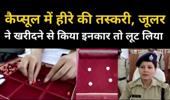 पुलिस ने हीरों की तस्करी करने वाली गैंग का पर्दाफाश किया है। पकड़े गए आठ आरोपियों में दो नाबालिग हैं। आरोपी असली हीरे दिखाकर नकली हीरे टिका देते थे। पुलिस को शक ना हो इसके लिए वह हीरों को लाने-ले जाने के लिए दवा के कैप्सूल का उपयोग करते थे। इनमें से पाउडर निकालकर इसमें हीरा भर देते थे। आरोपियों के पास से 255 नग हीरे, चांदी की पायल, नकदी रुपए और दो देसी कट्टे मिले हैँ। जब्त माल की कीमत करीब 55 लाख रुपए है। पुलिस ने छिंदवाड़ा के व्यापारी के साथ हुई लूट के मामले में आरोपियों को पकड़ा। पूछताछ के बाद तस्करी का मामला उजागर हुआ।