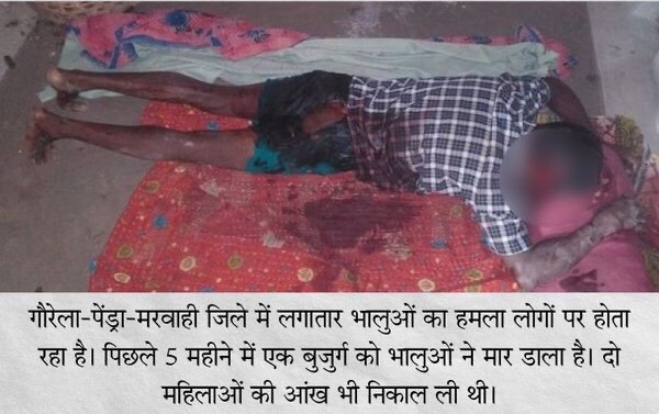 जिले में भालुओं का लगातार हमला लोगों पर होता रहा है। वहीं एक दुर्लभ प्रजाति के सफेद भालू की मौत भी हो चुकी है। दिसंबर माह में वह कुएं में गिर पड़ा था। लोगों ने देखा भी, लेकिन बाहर मादा भालू को देख कोई उसे बचाने की हिम्मत नहीं जुटा सका। इससे पहले मार्च में भालू मरवाही स्थित इंदिरा गार्डन और उसके आसपास के क्षेत्र में पहुंच गया था। दिसंबर में गौरेला क्षेत्र के खोडरी में एक वृद्ध को मार दिया और जनवरी में देवरानी-जेठानी पर हमला किया था।